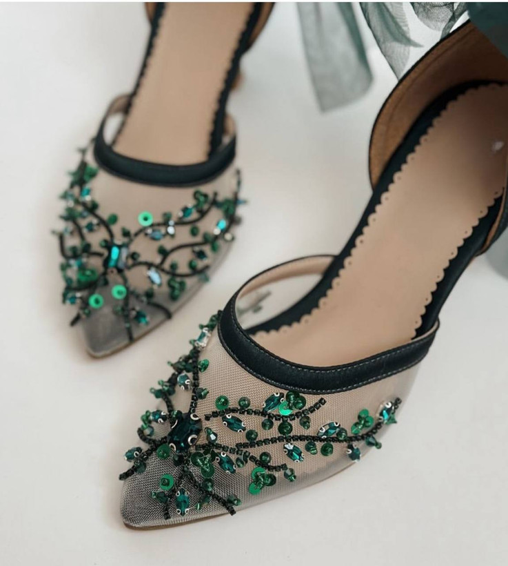 کفش مجلسی ۳ و ۷سانت توری سنگ کاری کد ۱۰۷