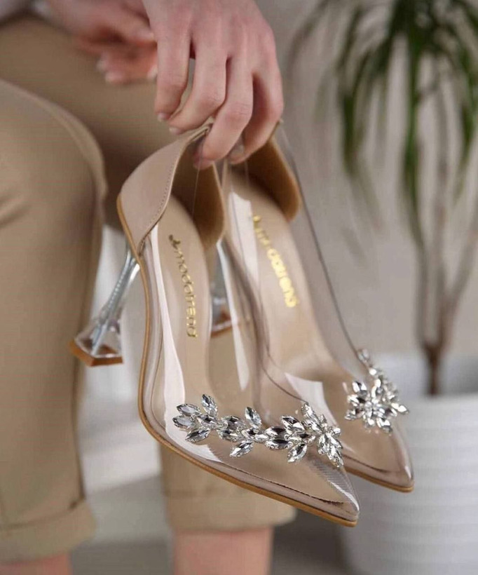 کفش مجلسی پاشنه ۷سانت طلقی ضخیم خارجی گندمی کد ۱۱۴