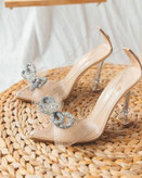 کفش مجلسی پاشنه ۷سانت طلقی ضخیم خارجی پاپیون توری کد ۱۱۷