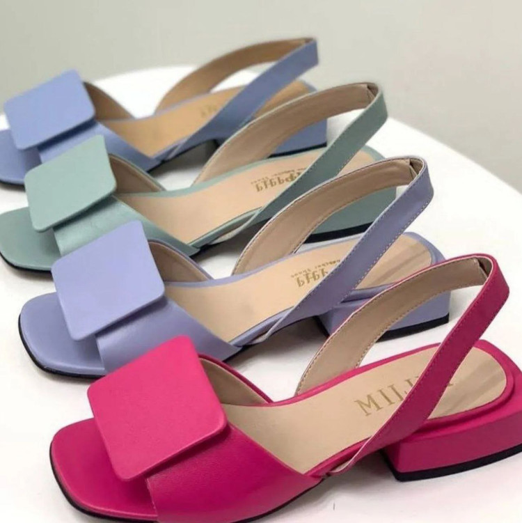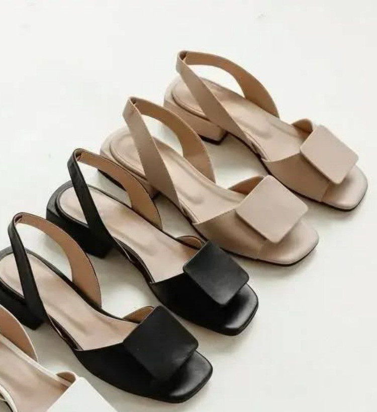 صندل زنانه سگگ چرم مربعی پاشنه ۳ سانت کد 130
